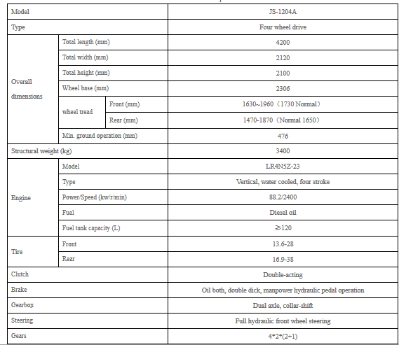 JS-1204A tractor is equipped with a famous engine, high ratio of torque reservoir. Large traction, attached with many implements. Side control device.