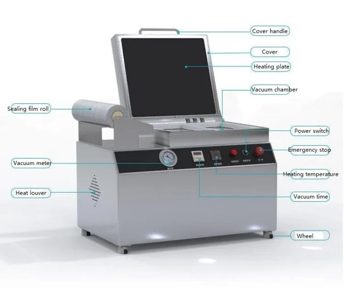 - Easy to operate. Adjustable vacuum time and heating temperature