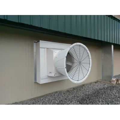 The Light Trap/Fan Housing (LTFH) comes in four different sizes 4'x4', 5'x5', 6'x6', 6'x7', and 7'x7'. It is constructed with durable PVC, stainless steel and EXPS foam materials. The housings use double-wall construction for strength and durability with foam insulation between the layers. The housing is pre-fabricated with pre-drilled holes for rapid assembly and easy installation. The light trap material is easily accessed for removal when the fan needs maintenance or cleaning. The enlarged light trap area minimizes airflow restrictions and various sizes are available to fit most any fan up to 25,000 cfm