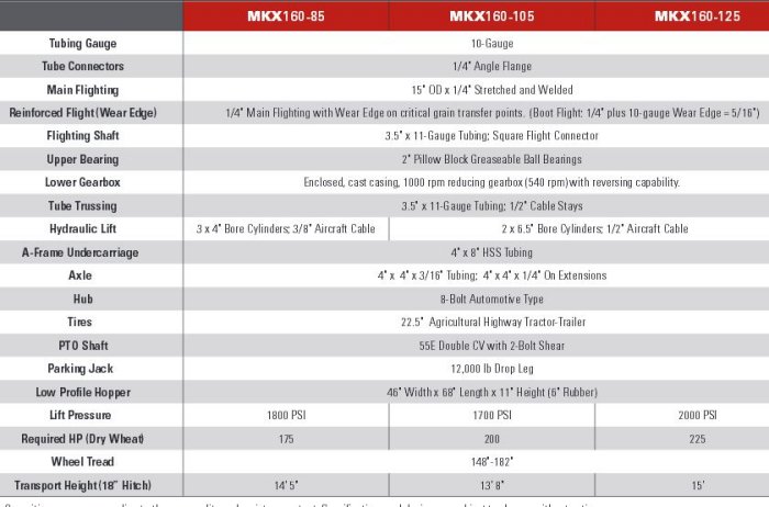 Introducing the MKX 160, available in 85`, 105` and 125` lengths with capacity over 23,000 BPH. In order to design the best auger we’ve ever built, we utilized our world-class manufacturing facility and highly skilled research and development team. Westfield designed every detail of this auger for today’s demanding large farm and commercial operators. From the engineered top truss, for added strength and stability, to a long list of standard features, the MKX 160 is built to last.
