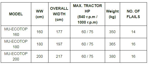 - Gearbox with integrated over run clutch and through drive 540 r.p.m. or 1000 r.p.m.