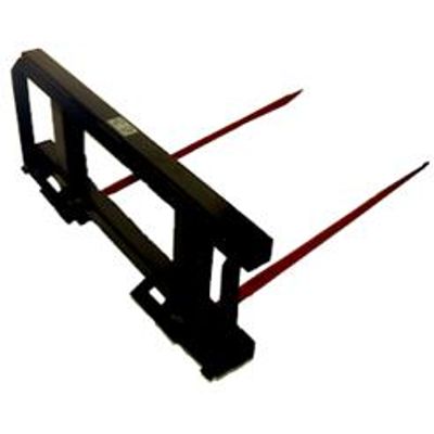 Moves bales, pallets, gates, etc. 47 1/2" wide with 10 degree tilt ahead. Tines 28" on center. Usually sold with 49" Conus 2 Tines (5` wide round bales, 4` wide square bales, sticks through 3x3 squares). Available with 39" Conus 2 Tines (3x3 or 3x4 square bales or 4` round bales).