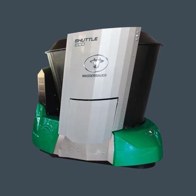 With a volume of 2.2 m³, the Shuttle Eco is a manoeuvrable, self-driving feeding robot. Equipped with the latest battery technology and the specially developed plastic mixing container, made of wear-resistant material. The Shuttle Eco feeds your animals around the clock, 365 days a year, with precisely tailored amounts of fresh food. The hard-working helper never needs a holiday or a free weekend!