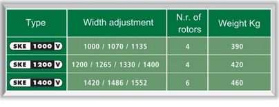 The difference from the base setting to the extended setting with the outer blades working a larger area is 20 cm. There are several settings that one can use, for example, the SKEV 1200 has working widths from 1200, 1270, 1330 and 1400mm giving a perfect seed bed over all widths.