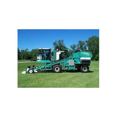 Powered by a standard 190-hp Cummins engine, the solo operator seated in an air conditioned cab has complete control over blower speed, primary and rear elevator speeds, cutter bar speed and height, and ground speed. The two-bed harvester features a 4` high capacity boom and easily controlled front pick up elevators with spring assist floats. The list of available options is impressive: a moveable 4` or 5` dipper, rotating cab, stainless blower housing liners, and a whopping 240 hp engine. Digital readouts for the blower, primary chain, and ground speed can be included, as well as hydraulic adjustment front elevator gauge wheels. Ground sync primary chain control, a posi-traction four wheel drive system, and hydraulic trash chain drive can all be built into the SP-132.