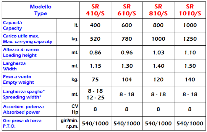- FRAME: high stiffness unit made of steel tube with three points attachment 1° and 2° category (Mod. SR 410/S first category only).