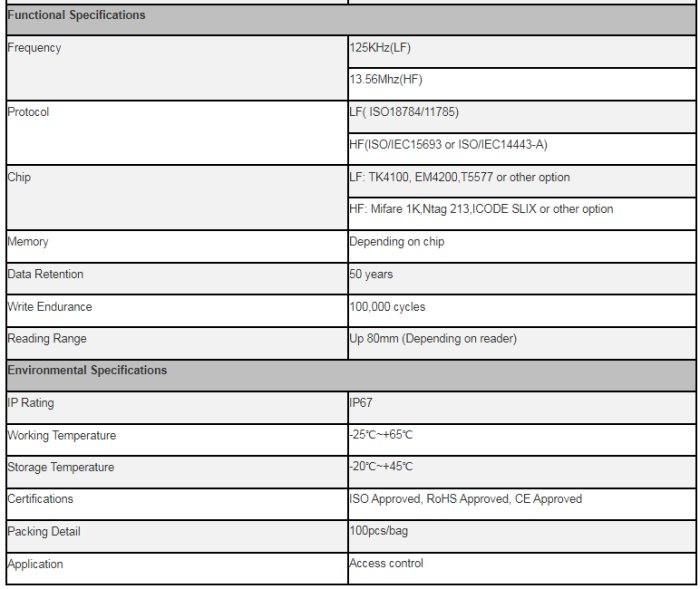 Physical Specifications: Item - SRKF34, Dimension - 23.6*43*5.5mm(W*H*T), Material – ABS, Weight - 8g, Color - Blue, Black ,Red, Green, White or other option, Key Chain – Yes, Personalisation Option - Serial number printing, Logo printing, etc.