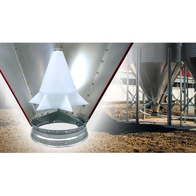 Available for 16" to 22" hoppers. HIGHLIGHTS: Reduces feed bridging. First feed in is first feed out. Reduces feed separation. Easy to install.