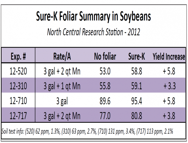 Sure-K has a long track record of success in both row and horticultural crop applications. Years of replicated research at both the largest plant nutrition research farm in the country, and in field trials across North America have proven that recommended applications of Sure-K® can increase yield with less applied fertilizer than its conventional counterparts.