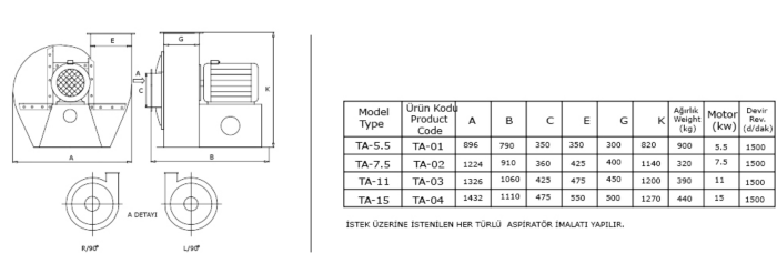Its body is made of steel construction.Generally dust aspirators are manufactured at medium pressure rate.They are also produced at pressure values of 200-600mmss in accordance with requirement and needs.These types of aspirators are used in cleaning units of flour mills and air aspiration of semolina purifiers.Motor is chosen according to air flow rate and pressure values.Its motors are coupled.