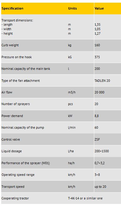 Model TL 200S -Field Mounted Sprayer