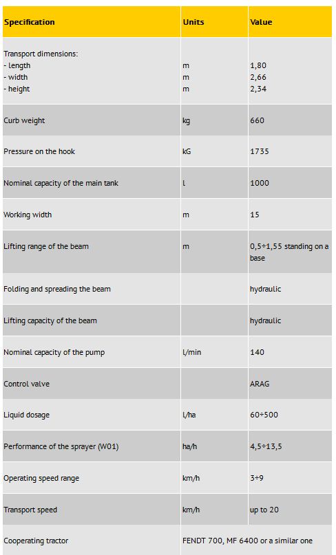 MOUNTED FIELD SPRAYER TL1015 with the beam hydraulically fold.