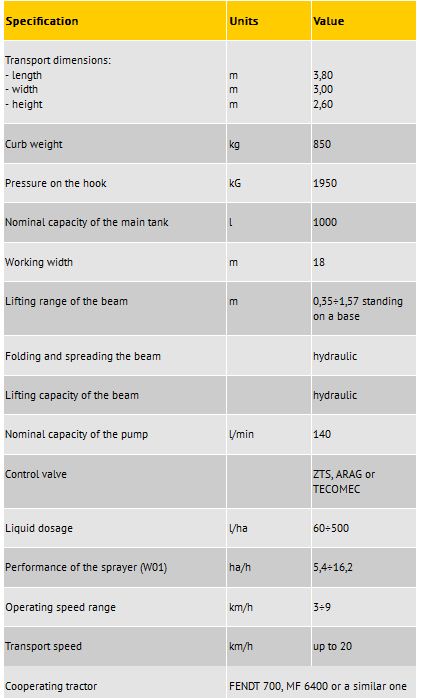 The tank is made of polyethylene, and includes: the main tank , hand washing tank , tank washing tank. Mounted Field Sprayer TL1015 with the beam hydraulically fold.