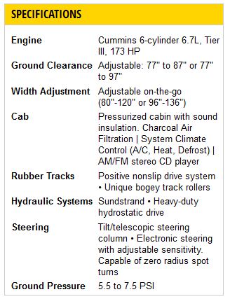 - Its low impact ground pressure allows operation in adverse ground conditions.
