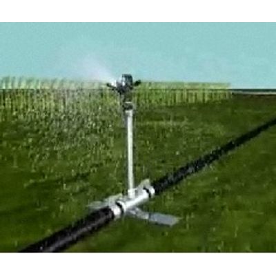 The solid set irrigation system is sprinkling over foliage. Its characteristic is a criss crossed of low flow sprinklers covering the whole area. It affords several advantages:Assurance of quality watering thanks to a more uniform water distribution on the surface. A low pluviometry avoids soil pounding.It lits to any kind of soil and crop.It may consist in a solid set system on perennical plants or a mobile system on seasonal plants.Easy and quick set up.Its galvanised steel couplings are more reliable and last longer than plastic ones. Compared to aluminium couplings, the steel ones are not subjected to stealing.in conclusion the solid set irrigation system equipped with galvanised steel couplings associates quality and reliability at low cost.