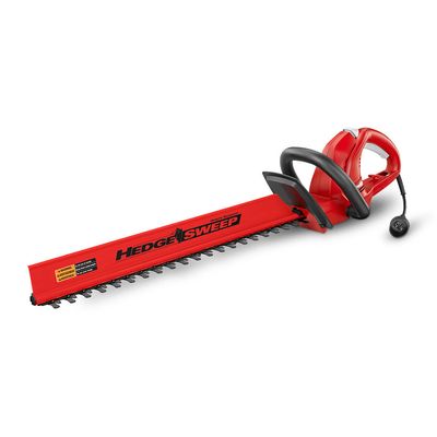 HedgeSweep Debris Remover. Wrap-around Handle for Comfort at Every Angle. Cuts Branches up to 1/2inch in Diameter. 22inch Dual Action Hardened Steel Blades. Powerful 3.7 Amp Motor. Cord Retention Hook.