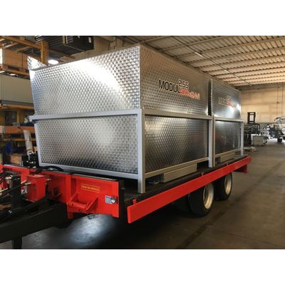Modular tank made of anti-wave Aisi 304 sheet metal with painted steel frame. Thanks to its stability and multiple uses it is ideal for transporting grapes, liquids, semi-liquids and grains. Complete with hydraulic connection for side tipping and mountable on any trailer or flatbed. The tank is supplied with a CE certificate and a user and maintenance manual in accordance with the 2006/42/EC Machinery Directive.