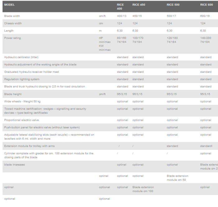 - Possibility of adding extension modules on the sides of the blade on models RICE 400, RICE 450 and RICE 500.