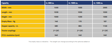 Mono disk centrifugal Fertilizer spreader with double side conveyor in stainless steel. Localised spreading till 6 mt. Full field spreading 16 mt.