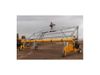 CPMs can be designed by MOR to meet client specific requirements for cover width, length and weight. The CPM has unlimited directional capability (foward/reverse, sideways and diagonally at any angle) and can even rotate 360 degrees on one tire. The cover roll-up tube (extra thick 10-inch diameter tube to eliminate deflection) is operated by two hydraulic rams (for lift) and a hydraulic motor for roll-on/roll-off of the Compost Cover. The CPM is designed to have a structural factor of safety of 2 for lifting a totally wet or saturated cover.