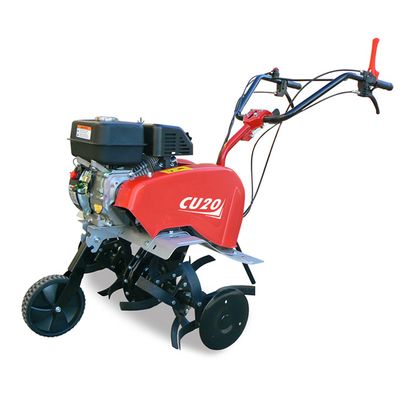 The Casorzo Motor Hoe CU20 is a compact sized rototiller, designed mainly for hobby use. Equipped with a robust and compact structure, it allows you to easily prepare the seedbed, making the soil finely crushed, soft, well-ventilated and ready for cultivation. The cutter of this rotavator is 80 cm wide and it is equipped with hardened steel hoes with a diameter of 32 cm which allow to work in depth with great stability and safety. It is also possible to remove two or four of the hoe elements to decrease the width of the milling. The Motor Hoe CU20 features a forward gear and a reverse and it is equipped with a belt and chain transmission.