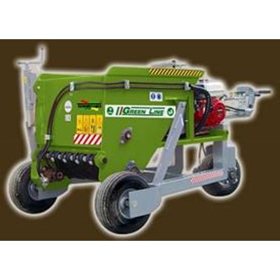 Sand spreader with patented helical roller and independent HONDA motor for spreading salt and driving wheel. The hydraulic salt distribution on this machine is regulated by a hydraulic flow regulator for optimal dosage of the product. The commands (FORWARD - REVERSE) on the hydraulic system feature 2 flow regulators that allow the operator to regulate the maximum operating speed as desired .