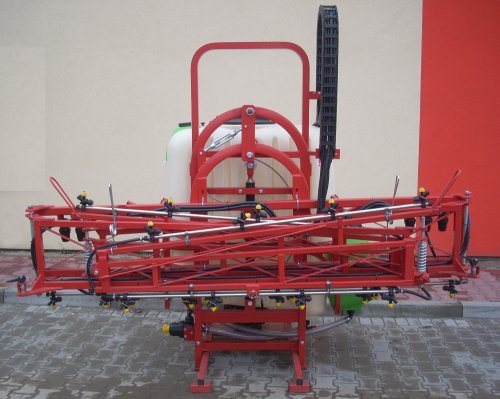 raised and hydraulically folded spraying boom with the option of self-levelling and multi-position bodies for acid-resistant tubes. Spraying boom working width: 12m, 14m, 15m, 16m and 18 meters.