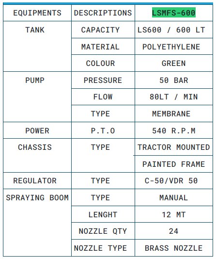 Lusna - Model 600 LT 12 MT - Mounted Field Sprayer.