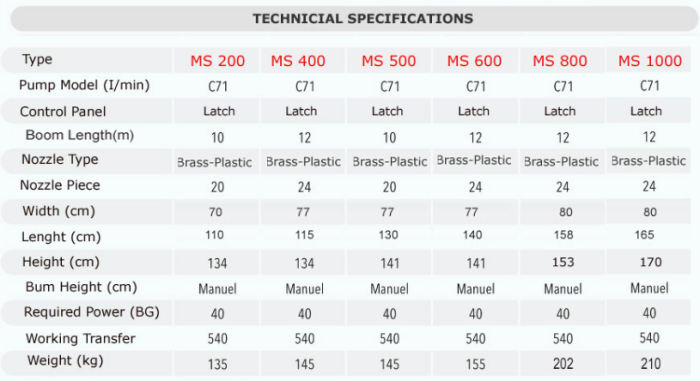 Tractor mounted sprayers by PTO via shaft developed to meet the different requirements of plant protection treatments. Sprayers extremely versatile and suitable, according to the applications, to operate in open-field cultivations, sprayer and distribute herbicides among the plant rows the availability of several mechanical and hydraulic spraying booms together with different equipments and option allow our sprayers to suit the requirement of the single users in the specific treatments.