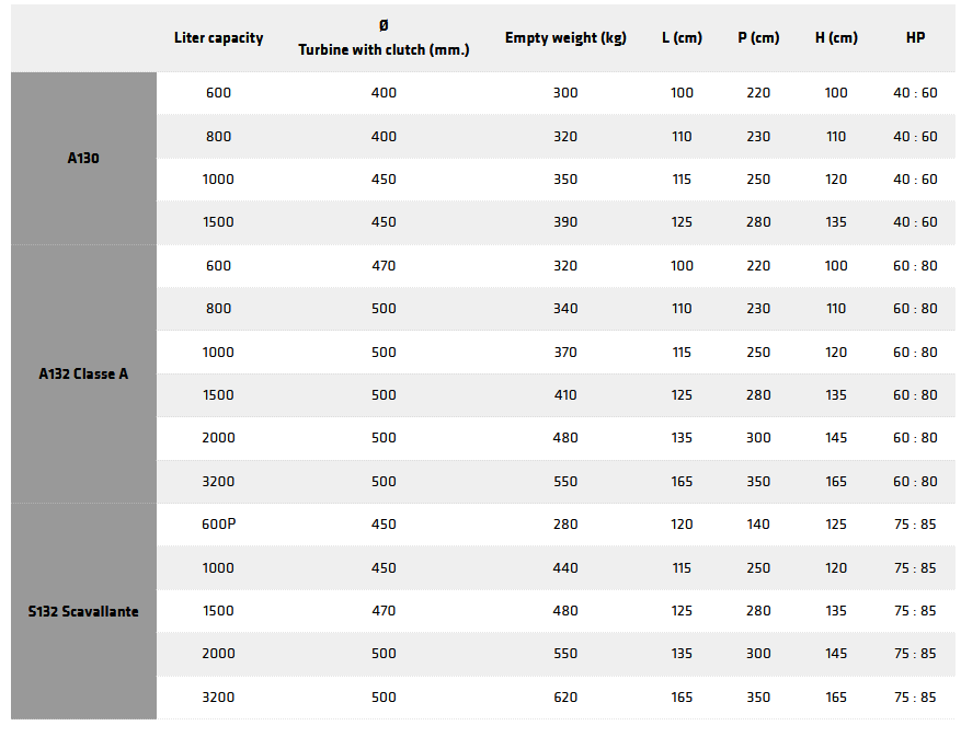 - Centrifugal high performance turbine with automatic iron clutch, therefore no torsion over the PTO shaft.