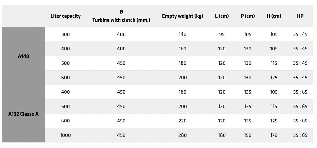 - Centrifugal high performance turbine with automatic iron clutch, therefore no torsion over the PTO shaft.