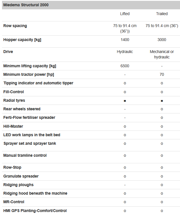 Our precise, potato-friendly Miedema Structural 2000 belt planter is available in two variants.