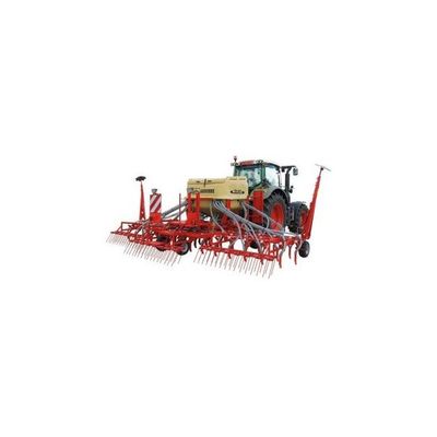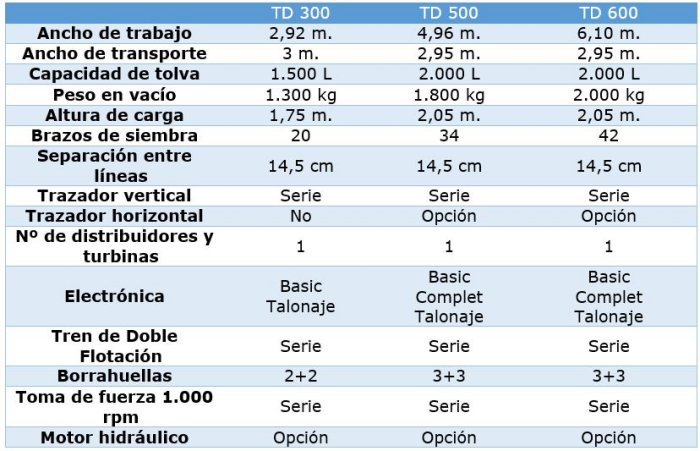 The sowing attachment for our TD allows us to sow in any land or preparation conditions. It includes the non stop device using springs to prevent breakage and which allows perfect adaptation to uneven surfaces. A 160 kg pressure element allows us to sow under extreme conditions of compaction of the surface of the field. High strength, anti-wear, steel arm with tip protected by two tungsten carbide plates. Minimum section which cuts a furrow just large enough to deposit the seed, preventing moisture loss and facilitating the covering over. The seed is deposited in the bottom of the furrow at the desired depth, based on the type of seed, and guarantees a uniform and rapid germination. For sowing in minimum, conventional and direct tillage.