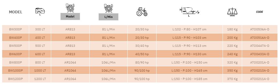 Themounted sprayer group BW-P without fan unit (suitable for various manual sprayings) is in particular designed to be used with booms for vineyards, orchards and open fields.