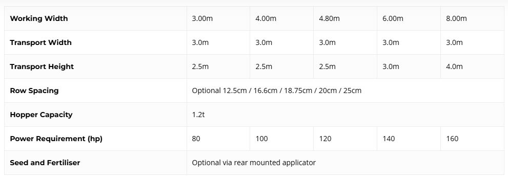 • Have it your way – choice of row spacing; 12.5/16.6/18.75/20 or 25cm