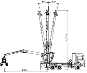 - Tower height/crane reach: 13,1 m / 9,1 m