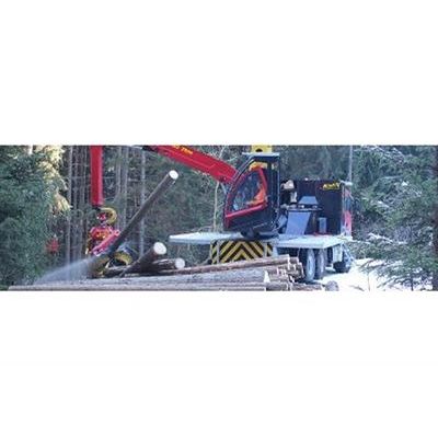 Not only the cable crane, also the harvester unit, the driver’s cabin, the whole truck build up, as well as all the machine and radio controls are coming from the house of Konrad.