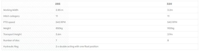 Features: Quick fit blades. Hydraulic folding suspension. Swarth Wheels. Folding cover for easy access to cutting bar. Mechanical lock for transport. Drive Shield Module. Friction clutch and overrun protection. Walterscheid driveline. 4mm cranked heavy duty blade. Easy access to hitching of tractor to mower.