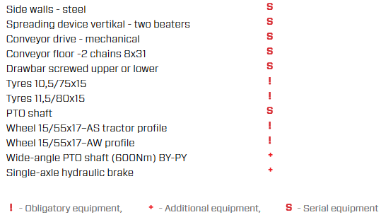 - It comes with a serial rear wall, which is fitted when the spreading unit is removed and the spreader is used as a standard trailer.