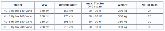- Hydraulic flail mower for flow rates of 50-90 l/min