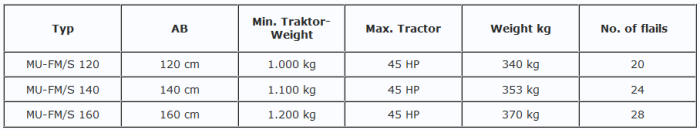 - Working width 1.20 m / 1.40 m / 1.60 m