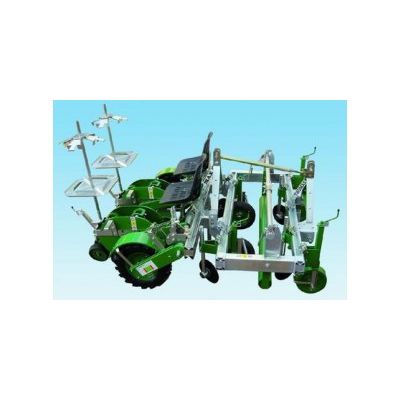 The machine "Thomas" can connect with the transplanting machine "Μax" for the covering of the ground with plastic and for the tranplanting of plants with conical, cylindrical balls with a single pass.