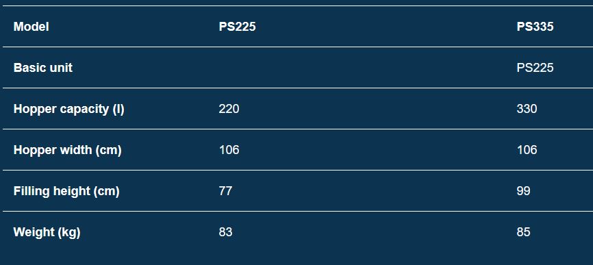 The PS225-335 is a truly multi-functional spreader/seeder. This smallest model of the Vicon pendulum spreader range is ideal for use on golf courses, sports fields and grounds, as well as in many horticulture and municipal applications. The compact design in combination with the short spreading surface gives you an optimal spreader for working in small areas. The pendulum spreader is as standard delivered with the nylon spreading spout for 9-15 metre working width. A variety of spouts for different applications and spreading widths makes it possible to spread fertiliser, seeds, sand, salt, pellets or any other granular product up to 15m.
