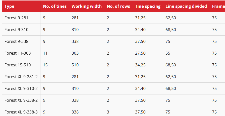 - K tine: suitable for clay and loamy soils, also usable in lighter soils