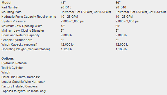- Includes skid steer mount and 3-point hitch Cat I and II