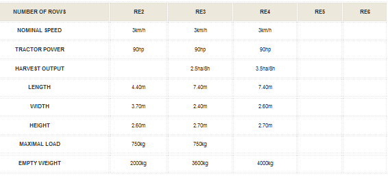 - Two harvesting belts, manual height adjustment.