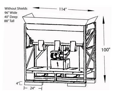 The Multibagger is an automated bag-filling system used to fill three (3) bags simultaneously. It is operated by (3) people, each at their own filling station specially designed to be the correct height for the least amount of back stress and muscle pain. The operator simply presses a foot pedal to activate the flow of material into the bag, and releases the foot pedal to stop the flow. The 13 hp Honda engine, insures the smooth handling of all types of fluent materials, including sand, compost, mulch, all types of blended soil, worm castings, and many types of aggregate and other landscape materials. This equipment is self-contained, lightweight, and transportable in a pickup truck bed. This machine comes with a safety grid, spillover shield, vibrator, auger and agitator and gasoline engine. The Multibagger is a very inexpensive and reliable machine that can bag virtually anything under the sun. Made in the USA.
