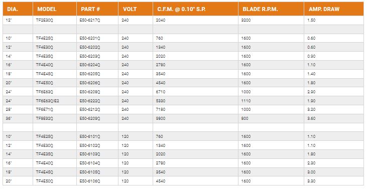 - 36″ tube fans are variable down to 120 volt only