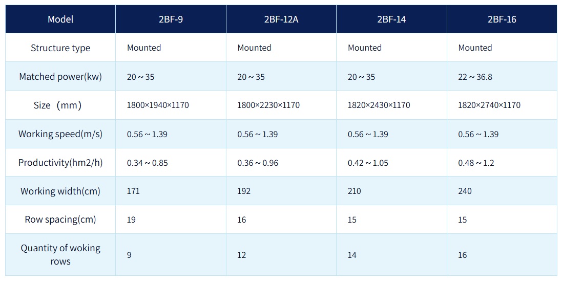 Demeter - Model 2BF-9, 2BF-12A, 2BF-14, 2BF-16 -Multifunctional Seed Drill for Corn/Soybean/Peanut