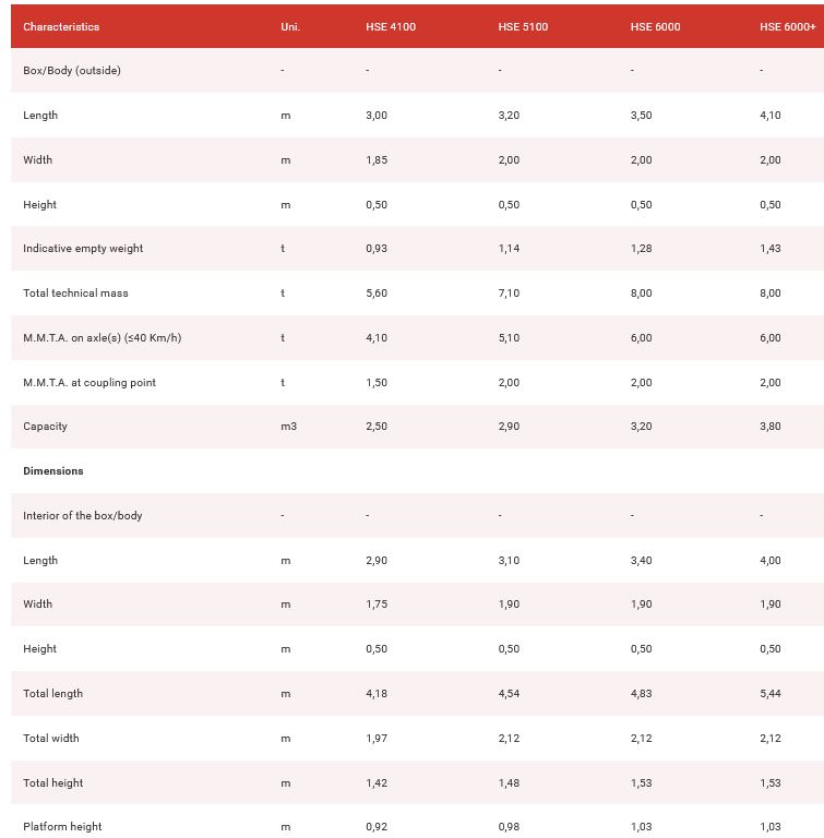 Characteristics:Trailers - 1 axle single-wheel. Backwards tipping metalic trailer box. Frame made of Ferpinta structural tube. Extensions in plain steel sheet (1 piece on models 4100 and 5100; 2 pieces in other models). Rear extension opening from top and bottom. Height adjustable drawbar. Support leg (fuse). Safety device, lighting and signaling in accordance with current legislation.